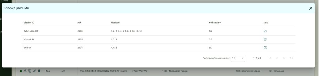 Stlačením ikonky rekapitulácie predaja sa otvorí formulár, v ktorom sa zobrazí zoznam predajov vybraného produktu, pokiaľ bol vo vybranom období zadaný predaj tohto produktu. Pokiaľ nebol zadaný žiaden predaj, formulár bude prázdny.
