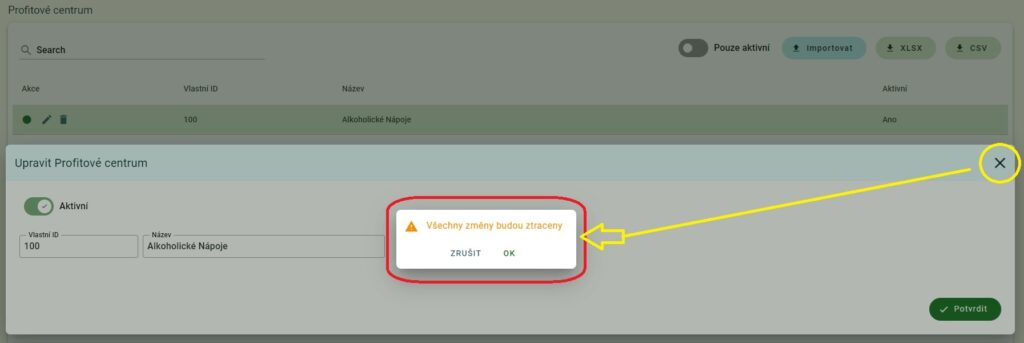 Stlačením krížika vpravo hore sa záznam neuloží. Pokiaľ boli vykonané nejaké zmeny, tieto budú stratené.