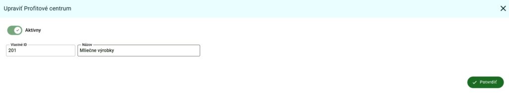 Užívateľ môže vytvoriť podľa potreby neobmedzený počet Profitových centier produktov/materiálov.