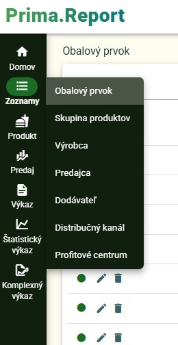 ZOZNAMY sú pomocné pracovné databázy (číselníky), ktorými je možné podrobnejšie štruktúrovať údaje hlavných databáz (PRODUKT, MATERIÁL, PREDAJ) s cieľom podrobnejšieho štatistického sledovania základných údajov.