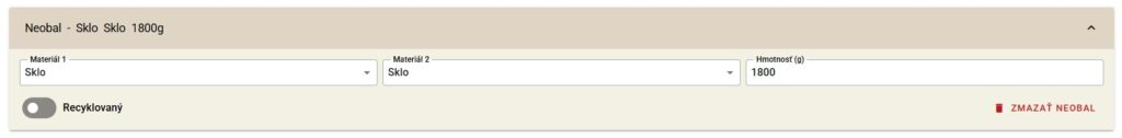 Pokiaľ je obalov viac, je potrebné stlačiť tlačidlo PRIDAŤ OBAL opakovane podľa potreby.